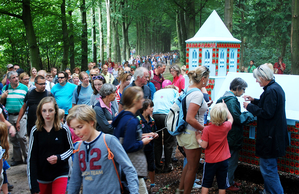 Op locatie De Zilverberg, waar het gedicht van John McCrea op een banier te lezen was, deelden ze samen met een aantal vrijwilligers 5000 zakjes met klaprooszaad uit aan de wandelaars. De zakjes waren bevestigd op een meer dan manshoge replica op schaal van de Oosterbeekse Oude Kerk. Op de zakjes stond het gedicht met toelichting (E/N) gedrukt.