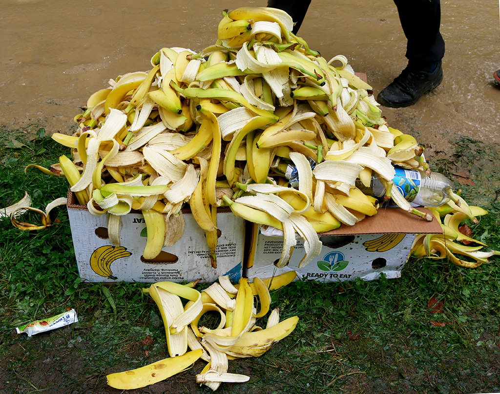 De wandelaars mochten deze onderdrukking van het bananenleger afbreken door een banaan te pakken en op te eten. Bananen staan bekend als krachtvoer en bevatten goed verteerbare koolhydraten, waardoor ze het lichaam snel van energie voorzien.