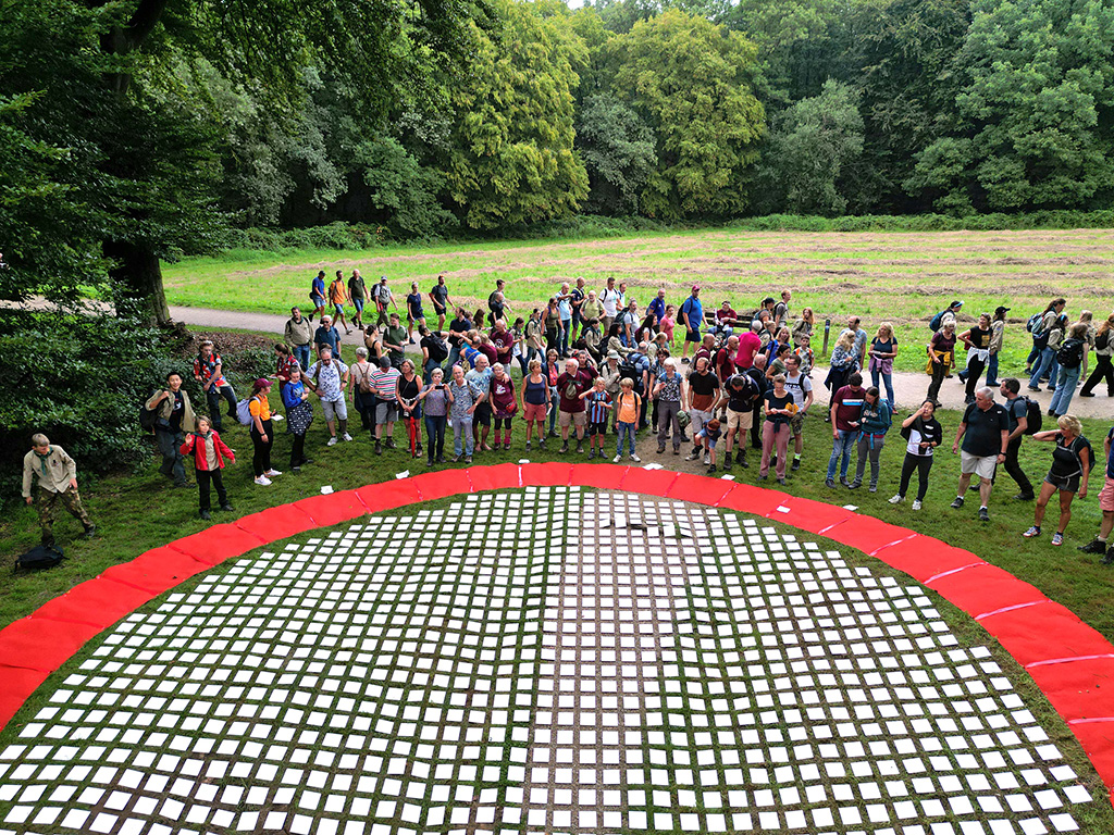 Na deelname krijgen de wandelaars zakjes uitgereikt met het logo van de lemniscaat en een toelichting. Het groeipapier bevat wortelzaden om de wandelaars bij het oogsten te herinneren aan herdenken en de betekenis van de lemniscaat. De installatie was te zien aan de Dunolaan op landgoed De Duno.